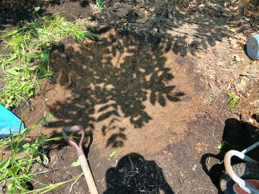 バイオジオフィルターの最端部には池を作り、あふれたものは側溝などに流すか、地下浸透させるのがオーソドックスみたいなのでとりあえず池を作ってみます。1.5m×1.5mくらいかな。深さは1m程だとおもいます。