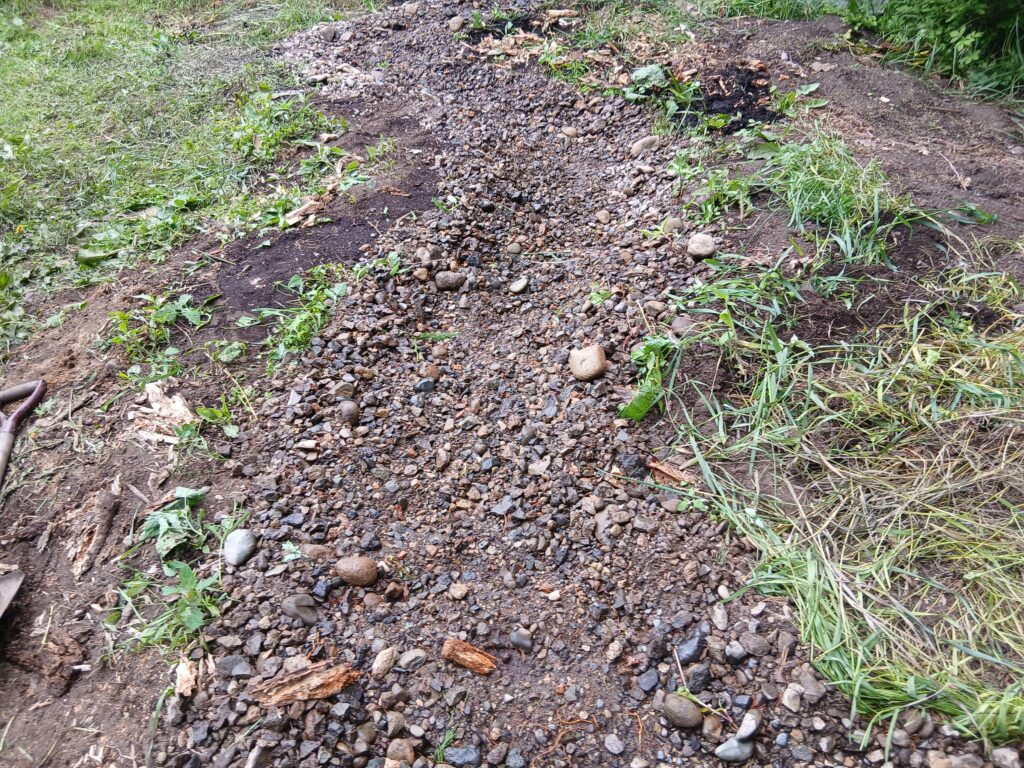 ちょっと汚いですけどくねくねの川をイメージして掘ってます。基本的にはカーブは水の流れが、止まるのであまりないほうが良いかもしれません。