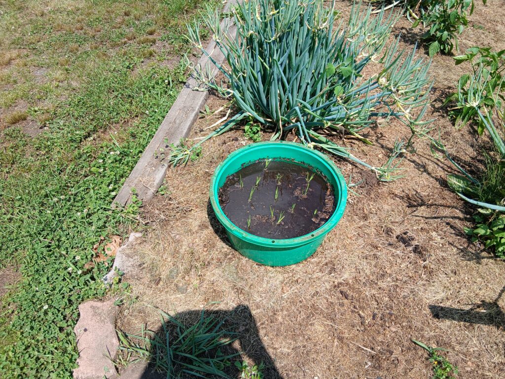 浸水させて発芽を促します。温湯処理などはせず、自然のままに近い形で行いましたが、しっかり芽が出てくれました。ただし、これをやったのが屋外で、まだ5月は寒かったので6月にやったのがのちのちの失敗です。来年はハウスの中で出穂の時期を考えてやりましょう。