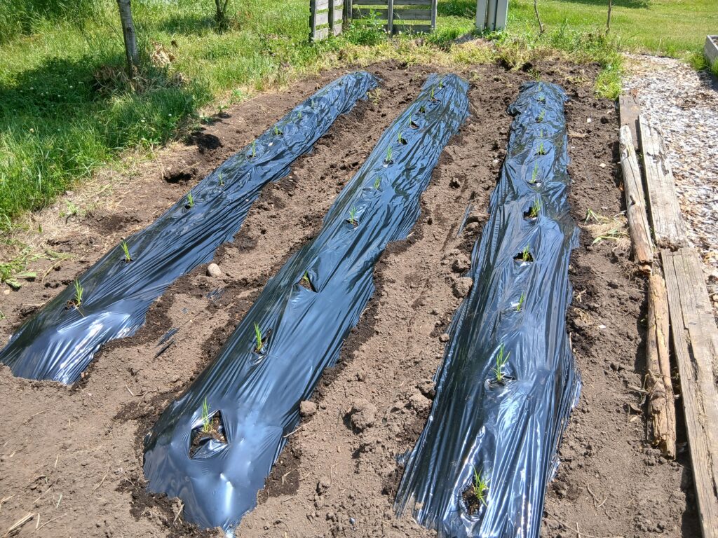 黒マルチを敷いた畝に苗を植えたところ、最も生育がよく、草に負けることもありませんでした。